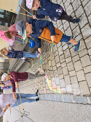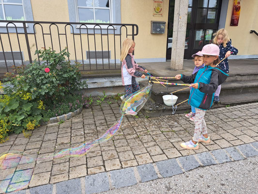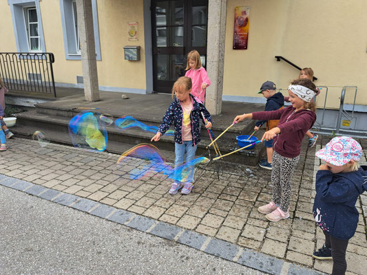 Die Kinder hatten großen Spaß dabei und freuten sich über die faszinierenden Seifenblasen, wie sie im Wind umhertanzten.