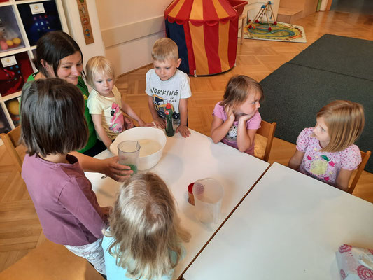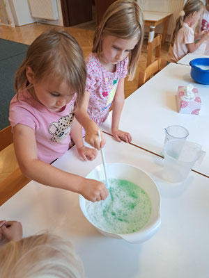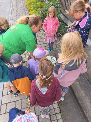 An einem sehr kalten Julitag besuchten uns auch einige Kinder im Eltern-Kind-Zentrum. Gemeinsam bastelten wir uns große Stäbe, um später aus der selbstgemachten Seifenlauge große Seifenblasen