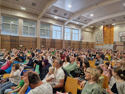Die mitreißenden Lieder sorgten für großartige Stimmung beim ausverkauften Konzert. Das Mitmachen von Groß bis Klein, vom Kleinkind bis zum Großvater machte dieses Konzert besonders. Der